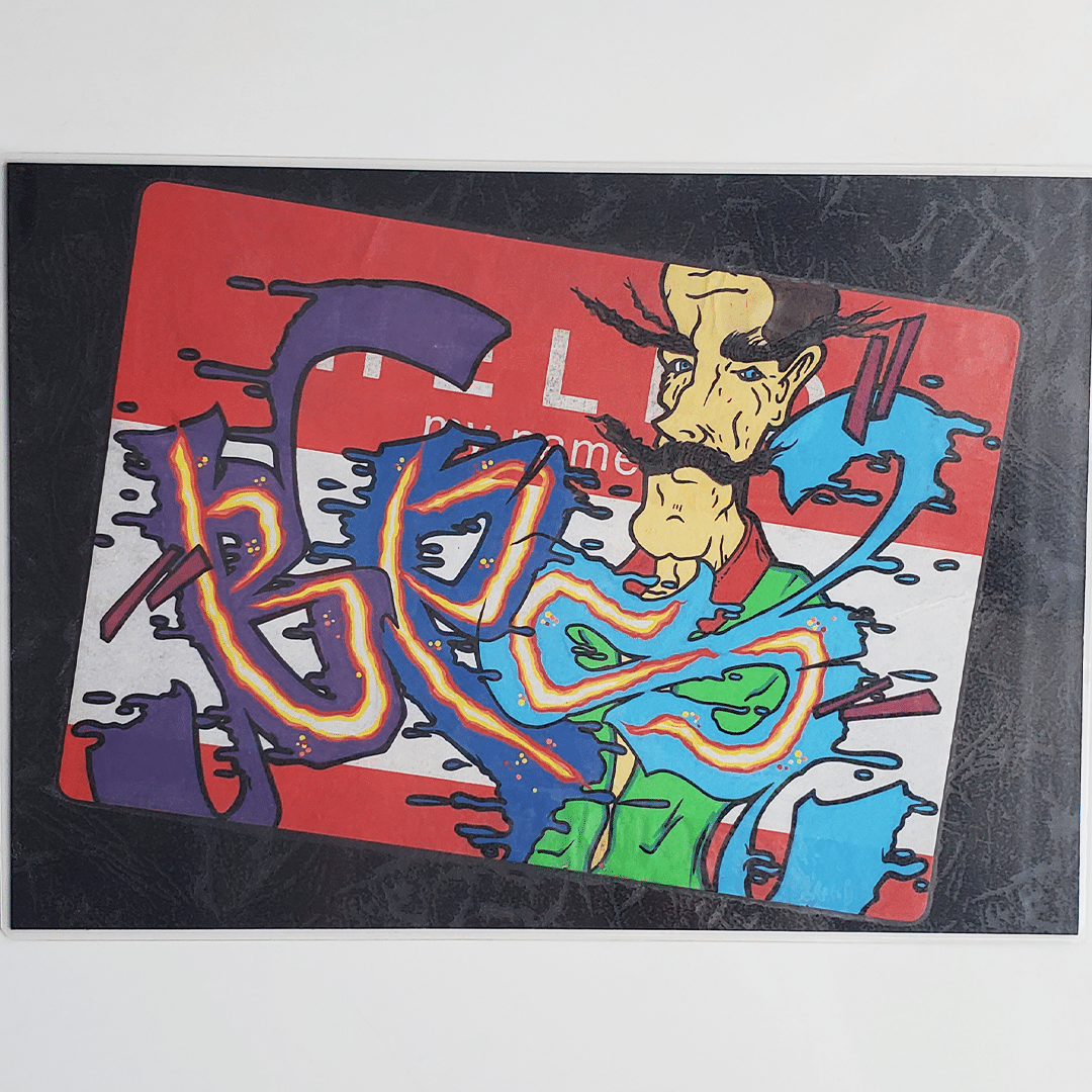 Étiquette autocollante collée sur feuille cartonnée et plastifiée